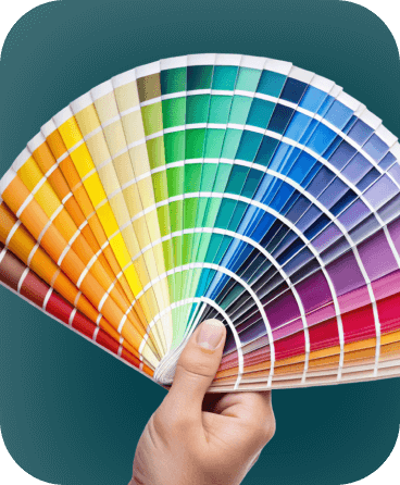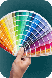 Мы показываем нашим клиентам, посещающим наш шоурум, выбранные ими товары в выбранных ими цветах (более 2000 цветов) на специальных досках. Или мы можем продемонстрировать то же самое, посетив дом или объект клиента и нанеся его на стену.